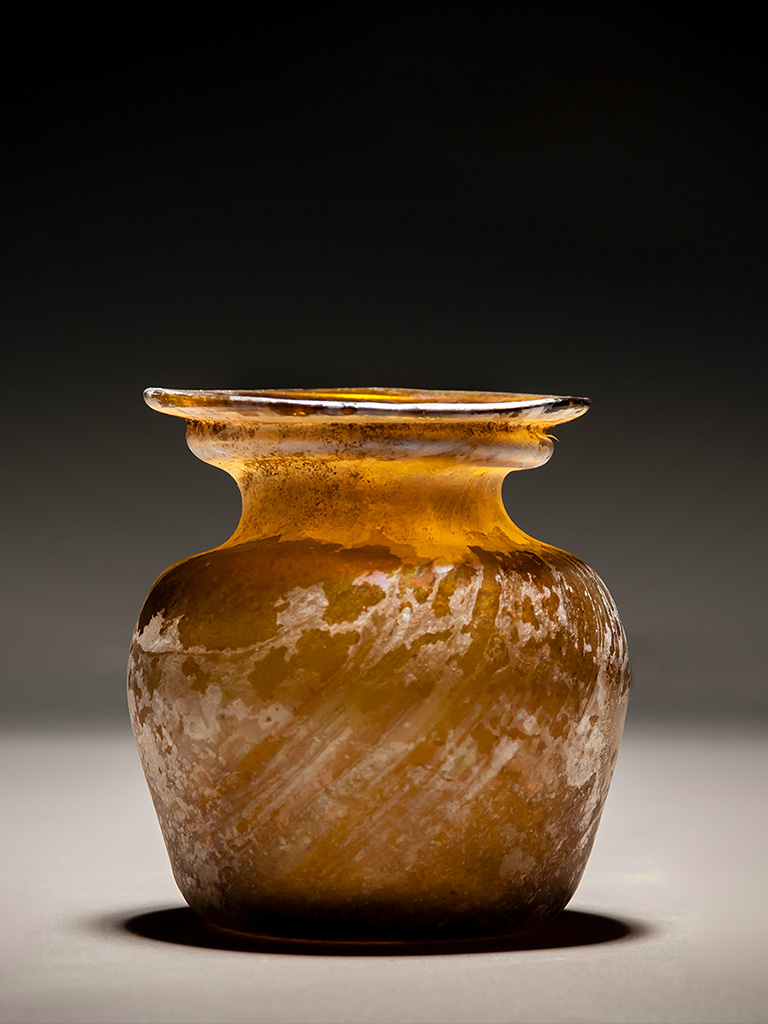 Only 7 cm in height, this squat jar would have held the perfumes or ointments used daily to embellish the scent or cheeks of an ancient Roman citizen.