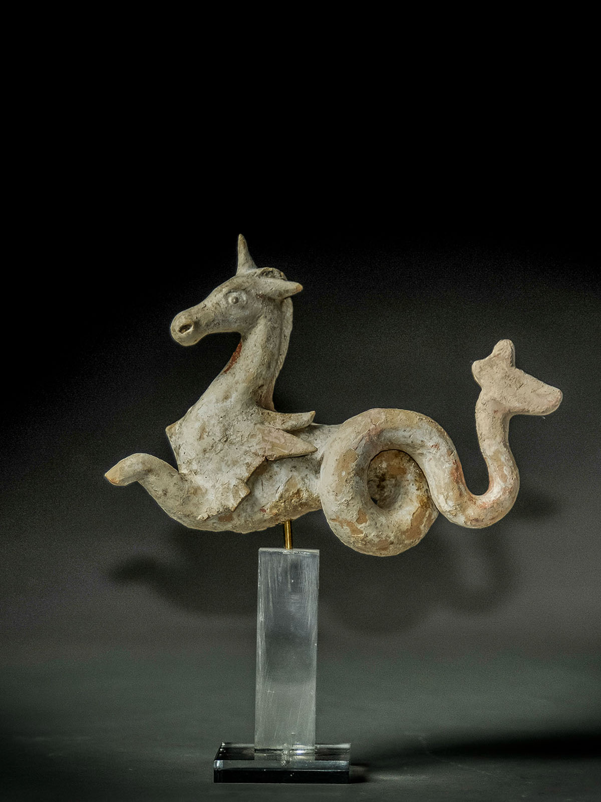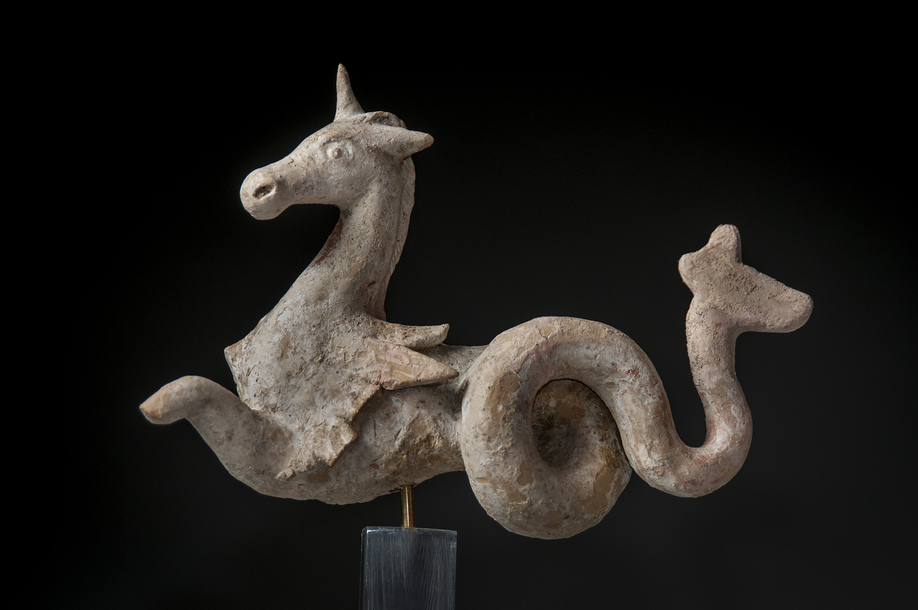 A Greek ceramics winged sea horse. The Ancient Greeks and Romans believed the seahorse was an attribute of the sea god Neptune/Poseidon and as such, the seahorse was considered a symbol of strength and power.