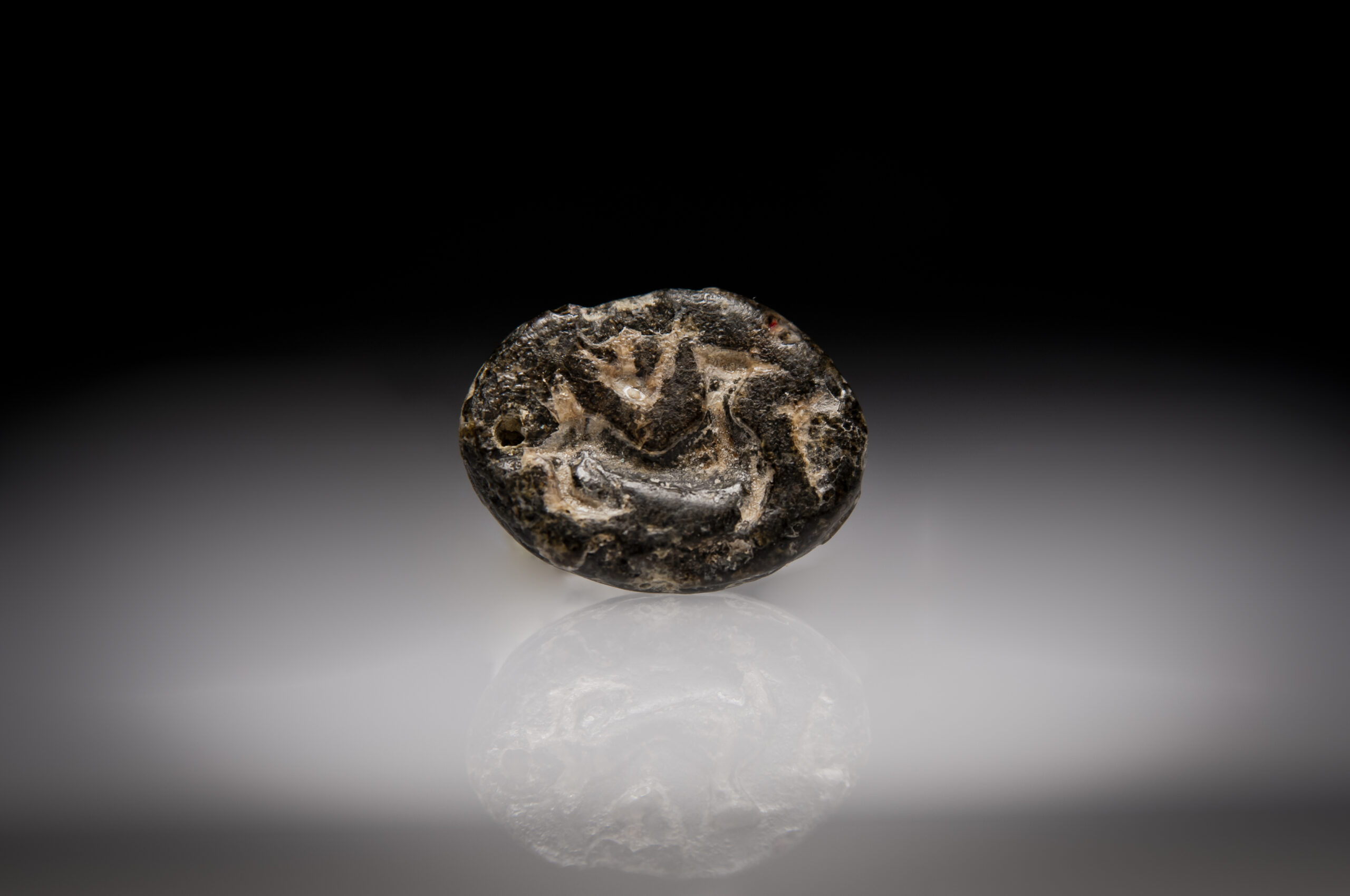 A Hyksos Steatite Scarab Engraved with a Locust and a Bird