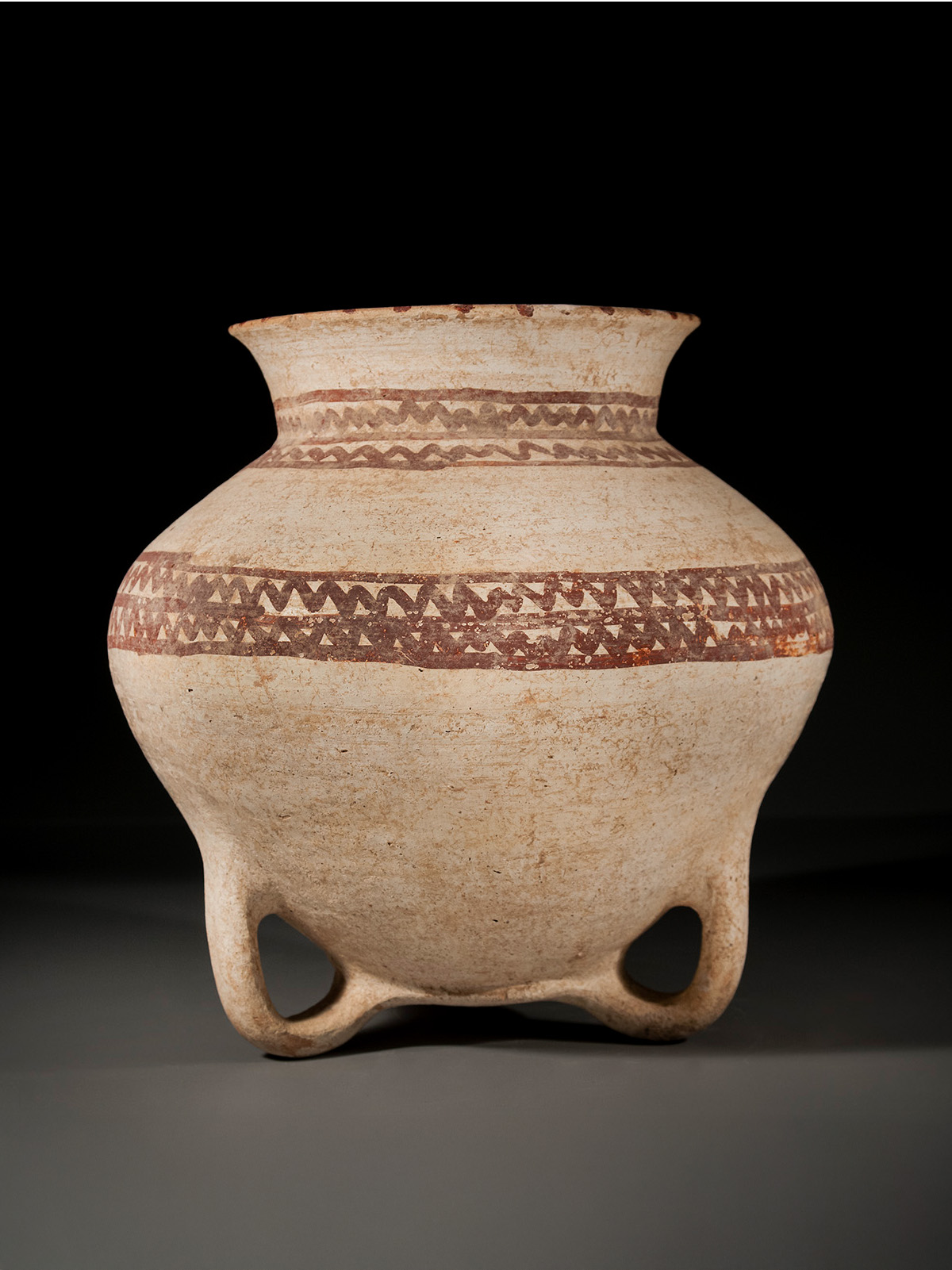 Canaanite Chocolate and White Ware Loop Footed Jar